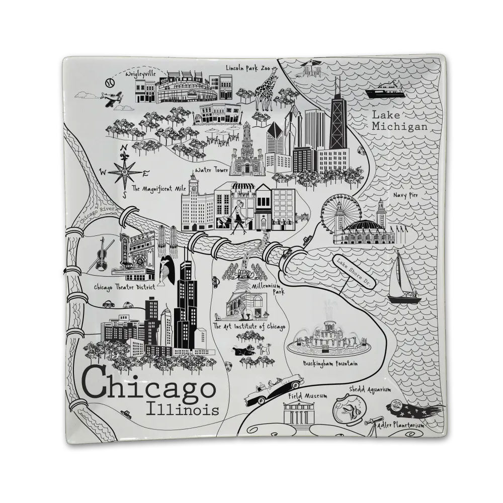 Chicago Black & White Map Small Square Plate โ CAC Design Store