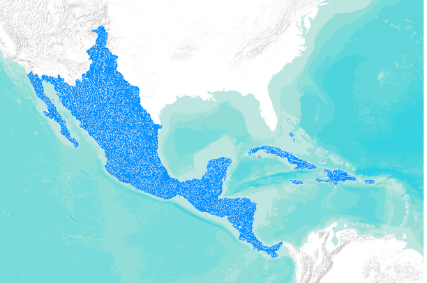 River basin map of Central America with white background